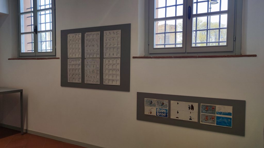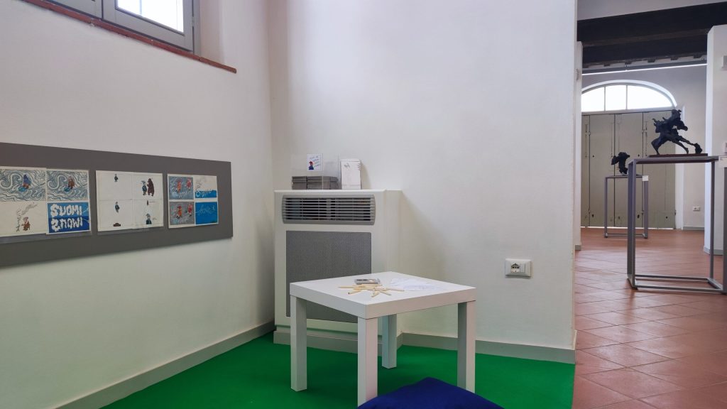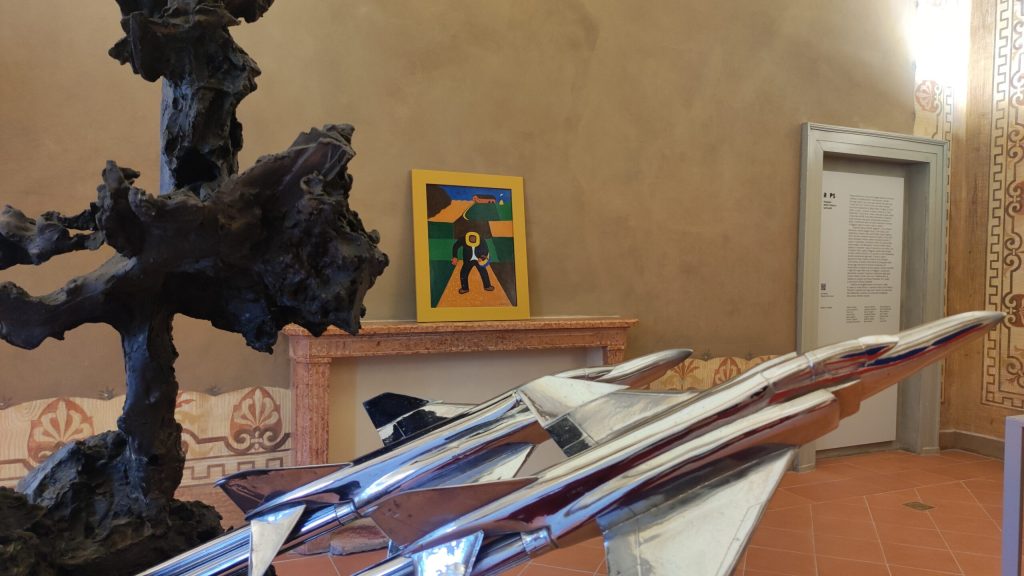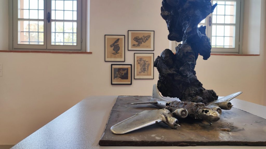 Una passione quella per il fumetto che ha accompagnato Santachiara per tutta la vita e che ha affiancato la sua attività principale di scultore e disegnatore, ambiti questi ultimi in cui invece ha mostrato tutta la sua abilità tecnica e artistica. Un eclettismo, da giudicarsi in senso assai positivo, rappresentato dalla presente mostra, che alle “strisce” unisce disegni, grafiche e soprattutto sculture esemplificative del suo stile e dei soggetti realizzati: un aereo abbattuto; una donna, qui braccata da un fantasma, un cavaliere, Dafne.